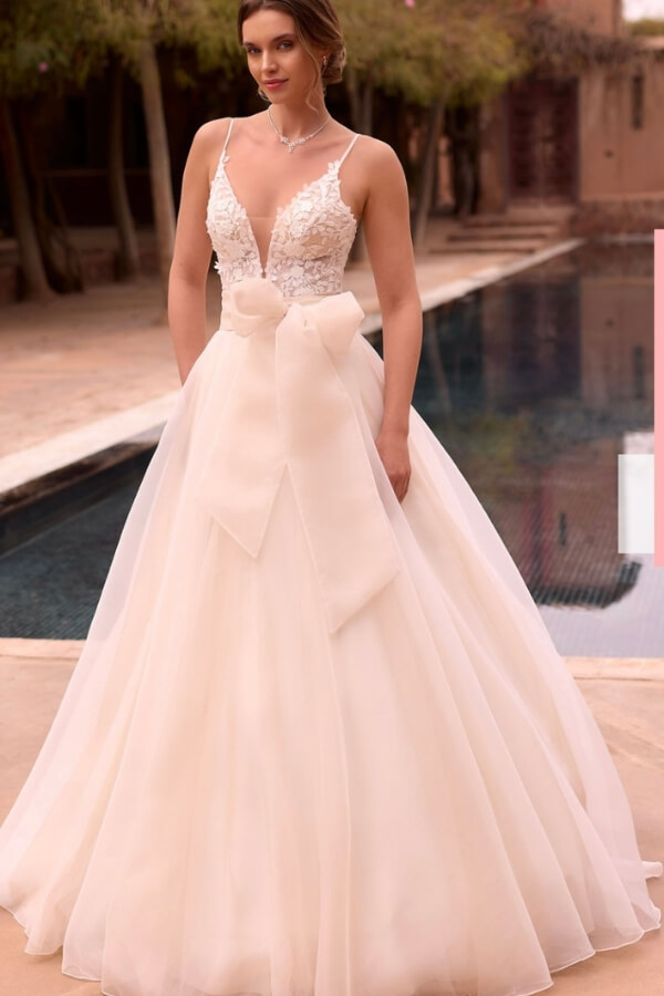 Oft mit reichen Stoffen wie Tüll, Satin oder Spitze verziert, sorgen Prinzessinenkleider für einen atemberaubenden Auftritt der Braut. Der dramatische Schnitt und die opulenten Details lassen dich wie eine Märchenprinzessin fühlen. Diese Kleider sind also perfekt für Bräute, die von einem Hochzeitstag voller Romantik und Glamour träumen.